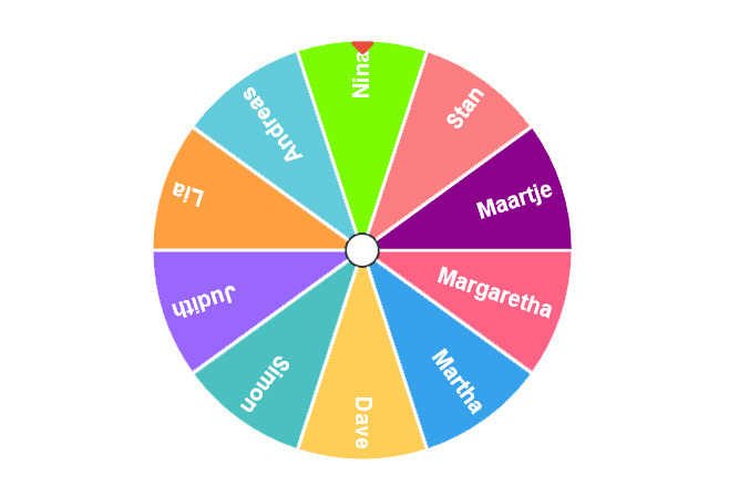 Het namenrad op deze pagina is speciaal gemaakt om snel en zonder afleiding een rad te draaien, direct in de browser.